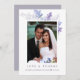 Romantisk vattenfärgslavender-blommigt luddrar ditt favoritfoto av bröllop med klassisk typografi. På kortets baksida kan meddelandet anpassas eller text tas bort för ett handskrivet meddelande. Berätta om du behöver hjälp eller har speciella förfrågningar.