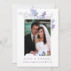 Romantisk vattenfärgslavender-blommigt luddrar ditt favoritfoto av bröllop med klassisk typografi. På kortets baksida kan meddelandet anpassas eller text tas bort för ett handskrivet meddelande. Berätta om du behöver hjälp eller har speciella förfrågningar.