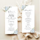 Romantic Light Blue Floral Wedding Program is an elegant ceremony guide designed with soft light blue tones and delicate floral details that reflect romance and timeless beauty. Featuring refined typography and a well-organized layout, this wedding program helps guests easily follow the ceremony while perfectly complementing the overall floral wedding stationery suite. Ideal for romantic, garden, or classic wedding themes, it adds a graceful and polished touch to your special day.