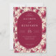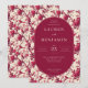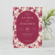 This elegant wedding invitation features a central oval frame with a deep maroon background, surrounded by an intricate floral pattern of large red and pink roses with green foliage and small birds. The design uses a mix of serif fonts to create a classic, romantic theme, emphasizing the names "Lauren and Benjamin" as the focal point. The color palette of rich maroons and soft cream tones enhances readability and adds warmth, making it perfect for a formal celebration. The overall layout balances negative space effectively, creating a polished and sophisticated appearance that conveys a mood of timeless charm and joy.