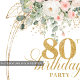 Romantic Minimalist Blush Floral 80th Birthday Inbjudningar