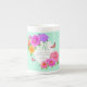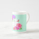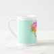 Romantic Monogram Peonies Garden Grönt Benporslin Mugg