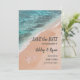 Tittar du perfekt bröllop spara datum-kortet för din strand eller nautisk firande? Vår romantiska havssidestrand, sand, hav och stjärnfiskdesign är säkert tonen för er drömma havsviken bröllop! Den fängslande bildtexten och personligens ordalydelse kommer att transportera dina gäster till havets lugn, skapar dem känna att de går in i äventyr med dig. Oavsett om du planerar ett bröllop på stranden eller en lokal firande med en biskopsvibe, är det här kortet ett vackert sätt att tillkännage din speciella dag. Ta en titt på vår matchningsdesign för andra bröllop-skrivpapper som bröllopsinbjudningar, välkomstskyltar och mycket mer!