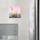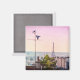 Den här magneten har ett originalfoto av Eiffel Torn i Paris, sett från Montmartre, som bearbetats med en vintage som ser ut som en måltavla.