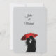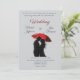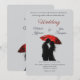 Gratulera till kärlek med den här fantastiska, konstnärliga bröllopsinbjudan med en romantisk silhuett par som delar ett intimt ögonblick under ett rött paraply. Den svarta och vita kontrasten i eleganten, parad med ett fet stänk av rött, skapar en tidlös och dramatisk känsla. Perfekt för modernt, parisiskt, europeiskt och vintage-inspirerat bröllop. Anpassa med dina detaljer och ange tonen för en oförglömlig dag!