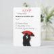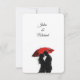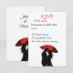 Gratulera till kärlek med den här fantastiska, konstnärliga bröllopsinbjudan med en romantisk silhuett par som delar ett intimt ögonblick under ett rött paraply. Den svarta och vita kontrasten i eleganten, parad med ett fet stänk av rött, skapar en tidlös och dramatisk känsla. Perfekt för modernt, parisiskt, europeiskt och vintage-inspirerat bröllop. Anpassa med dina detaljer och ange tonen för en oförglömlig dag!