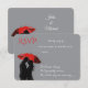 Gratulera till kärlek med den här fantastiska, konstnärliga bröllopsinbjudan med en romantisk silhuett par som delar ett intimt ögonblick under ett rött paraply. Den svarta och vita kontrasten i eleganten, parad med ett fet stänk av rött, skapar en tidlös och dramatisk känsla. Perfekt för modernt, parisiskt, europeiskt och vintage-inspirerat bröllop. Anpassa med dina detaljer och ange tonen för en oförglömlig dag!