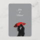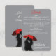 Gratulera till kärlek med den här fantastiska, konstnärliga bröllopsinbjudan med en romantisk silhuett par som delar ett intimt ögonblick under ett rött paraply. Den svarta och vita kontrasten i eleganten, parad med ett fet stänk av rött, skapar en tidlös och dramatisk känsla. Perfekt för modernt, parisiskt, europeiskt och vintage-inspirerat bröllop. Anpassa med dina detaljer och ange tonen för en oförglömlig dag!