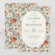This wedding invitation features a floral-themed layout with an oval central frame surrounded by a dense pattern of stylized blooms in soft pastel shades of peach, pink, cream, and blue-green. The botanical design includes detailed petals and leaves rendered in a watercolor-like effect, creating a vintage-inspired aesthetic that exudes warmth and romance. Elegant serif typography is used throughout, with decorative script for the names, enhancing the formal and celebratory mood. Perfect for couples seeking a classic yet artistic touch for their special day, this invitation sets the tone for a memorable celebration.