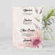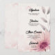 Add a touch of artistic elegance to your wedding reception tables with this beautiful floral menu card. The design features a large, hand-painted watercolor flower in soft shades of blush pink and mauve, accented with grey botanical leaves and a subtle pink watercolor splash background.