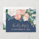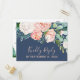 Det romantiska blomsterblåmenyvalet OSA vykort är perfekt för elegant bröllop. Blommigtens utformning har rosa, persikor och vita blomkorgsblommor i marin blå bakgrund. Med det här vykortet i bröllop frågar man på ett bekvämt sätt gästerna vilken måltid de vill ha på mottagningen.