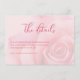 This wedding enclosure card features a soft, romantic design with large pale pink roses creating a soothing and elegant atmosphere. The color palette of light blush to deeper rose tones evokes warmth and tenderness, while the script-style heading "The details" adds a personal touch in rich red hue. Clean serif fonts provide clarity for additional information, guiding guests to visit a customizable website for more details. The overall layout is balanced and centered, offering a timeless look perfect for formal occasions, capturing the essence of romance and anticipation.
