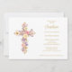 Romantic Pink Lilac Christian Floral Cross Baptism Invitation.