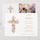 Romantic Pink Lilac Floral Cross Baptism Inbjudningar