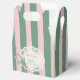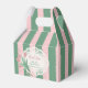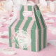 Send your cherished guests home with a beautiful token of appreciation housed securely within these Romantic Pink Ribbon and Tulip Floral Custom Favor Boxes. A definitive must-have for any seamlessly planned coquette-themed event, these premium gable-style treat boxes showcase a gorgeous, wrap-around pattern featuring our signature textured sage green and pastel pink stripes. The front display panel is adorned with a nostalgic white lace doily motif, framing a delicate bouquet of vintage pink tulips tied with a classic satin-style bow. This elegant design transforms simple party favors, candies, or small gifts into exquisite, memorable keepsakes that perfectly reflect your whimsical party aesthetic.