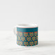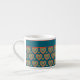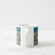 En snyggt Espresso-kaffe mugg, med mönster av lite grönt och rött hjärta på mörkens tealbakgrund. Du kan lägga till namn eller text till det övre blåa bandet om du vill. Du kan också lämna det klart.
