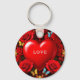 Romantic Red Heart Framed by Roses and Butterflies Nyckelring