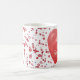 Romantiskt rött hjärta med Namn Coffee Mugg / Den här utformningen har ett rött hjärta på vit bakgrund, med röda gnistor. Du kan anpassa mugg med namnen i hjärtat. Namn är i trendigets vita skript. Underbar som en personlig och romantisk gåva till din älskade.
