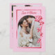 A unique wedding thank you card in pink with a red illustration of a rose framing one side of your arch-shaped wedding photo. The illustration is drawn by hand and merged into the printed sketched frame. The double-sided floral wedding thank you card has a printed thank you message on the back. Keep it as is, change it, or delete it to write something by hand. Personalize with two photos from your gorgeous wedding!
