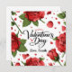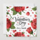 Send a message from the heart with this beautiful botanical Valentine’s Day design. Featuring large, lush red roses in full bloom and a playful border of scattered crimson hearts and falling petals, this design offers a classic romantic aesthetic. The center features elegant black script calligraphy that is fully customizable, allowing you to add your own name or a personal sign-off like "Love, Sarah." Set against a clean, crisp white background, this sophisticated floral pattern is perfect for significant others, family members, or close friends. The vibrant red and green tones bring a traditional garden feel to your February 14th greetings and celebrations.