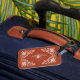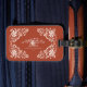 Bagagetaggen visningar en vacker vattenfärgsgrafik av en vit blommigt ram på en varm, jordröd bakgrund. Formuleringen "Mr & Mrs" kan lätt anpassas. Det är en underbar gåva till nylare och par för att fira årsdagar och hjälpa dem att enkelt upptäcka sitt bagage medan de reser.