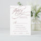 Det romantiska menyvalet ro guld för kalligrafi är OSA kort för ett enkelt bröllop. Den moderna klassiska designen har finare-snurrar och vismisk blomning med en elegant elegant-handskriven faux-guld-folie av typen ro. Svarskortet i bröllop frågar gästerna vilken måltid de vill ha på mottagningen. Obs! Den här utformningen har inte äkta folie av ro guld. Det är en grafik av hög kvalitet som framställs som folie av ro guld.