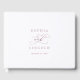 Den romantiska kalligrafimonogrammet bröllop gäst bok i ro är perfekt för ett enkelt bröllop. Den moderna klassiska designen har finare-snurrar och vitaktiga blomningar med elegant elegant-handskriven faux-ro-guld-typografi. Anpassa framsidan och ryggraden med parets namn och bröllop-datumet. Obs! Den här utformningen har inte äkta folie av ro guld. Det är en grafik av hög kvalitet som framställs som folie av ro guld.