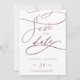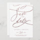 Den här romantiska kalligrafin i ro guld för att spara datumkortet är perfekt för ett enkelt bröllop. Den moderna klassiska designen har finare-snurrar och vismisk blomning med en elegant elegant-handskriven faux-guld-folie av typen ro.
