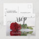 Den här vackra OSA kort gör det enkelt för dina gäster att svara på din bröllopsinbjudan. Utformningen har ett vackert röd ros som reflekterar i bassäng i vatten med vinkara och krämer, och ett gammalt skript med kalligrafi. Baksidan är designad för dina gäster att fylla i och återvända med plats för dem för att ange sitt val av måltider och antalet gäster som kommer att närvara.