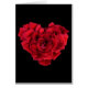 Vackra petaler för röd ros och ro som ordnas i form av ett hjärta som står ut mot en svart bakgrund på ett kort för notecard/hälsning.