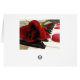 En enda romantisk röd ros och petaler som kontrasterar mot svart och vitt piano nycklar.