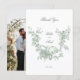 This classic design captures all the elegance and romance of 18th century France, and features an etched sage green floral wreath encircling a pair of nesting lovebirds. It is complemented by a subtle sage toile pattern featuring a classic landscape. Customize the opacity level of the graphics in the design editor, if desired. The back features an optional photo template.