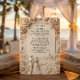Invite guests with timeless elegance using this classical scenic design, featuring a romantic monochromatic palette and simulated stone relief details.This design features a sophisticated trompe l'oeil technique that simulates the look of a three-dimensional stone carving. A sculpted floral border of lush roses frames a serene vignette of a bride and groom walking away down a winding cobblestone path toward a distant country chapel nestled in rolling hills. The color palette utilizes soft shades of cream, ivory, and beige to enhance the faux bas-relief effect, creating shadows and highlights that suggest architectural depth. The text is presented in a traditional serif typography, maintaining a formal and clean layout structure.