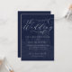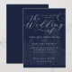 Romantic Script Navy Castle Illustration Wedding Inbjudningar