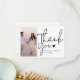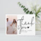 This elegant wedding thank you card features romantic script typography and a full-bleed photo layout. The flowing “Thank You” text adds a soft and timeless feel. The clean white background keeps the design modern and refined. Personalize it with your favorite wedding photo, names, and date. It is ideal for classic, beach, and modern weddings.