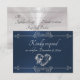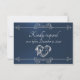 Design features an elegant blue background embellished with a delicate silver scroll heart and dividers. Stylish script place holders for the date are on the front, and response information on a white pearl back. Perfect for the simple to most elegant wedding. Also available with different colored backgrounds for your wedding theme colors. Designed to coordinate with the "Romantic Scroll Hearts & Calligraphy" Wedding Collection. To change details, click «Personalize». To move the text or change the text size, font, or color click «Click to customize further»