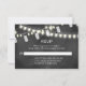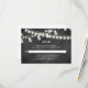 Det här visemiska responskortet är den samordnande OSA kort för våra romantiska strängar ljus endast inbjudningar efter bröllopsfest. Bakgrunden till den här inbjudan till mottagningskortet anges med en krita tillsammans med strängar av vitaktigt, romantiskt ljus och Mason burk. Enkel att anpassa.