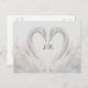 Svanar adorn de här bröllop spara datum-vykorten som ger ett romantiskt utseende. Underbar för särskilda tillfällen. Lägg bara till dina monogram och spara datuminformationen. Du kan också använda mallen för att lägga till mottagarens namn och skicka adress för att skriva ut den direkt på kortet (eller välja ett annat alternativ). Använda mallen för att skapa ditt eget romantiska vykort för svan bröllop spara datum.