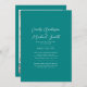 Teal Lövs, Handskriftlig stil-skript, foto, qr-kod för osa, bröllop-inbjudan.