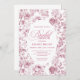 Invite guests to celebrate with this elegant bridal shower invitation featuring classic French toile de Jouy roses. Soft dusty pink, blush, and pink and white floral patterns create a romantic vintage look, beautifully accented with refined rose gold details. Professionally printed by Zazzle, this design delivers crisp text, rich color, and a smooth, premium finish that highlights every rose and floral detail. Perfect for a timeless, floral, or classic bridal shower theme, this invitation is fully customizable and arrives polished, photo-ready, and ready to impress your guests.