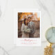 This wedding thank you card features a beautifully composed photograph of a couple standing together, with warm sunlight creating a soft glow around them. The design uses a classic color palette of golden yellows and muted grays, complemented by the greenery in the bouquet. Elegant typography highlights the phrase "thank you" in cursive script, followed by clean sans-serif fonts for names and location, all set against a minimalistic background to emphasize the romantic mood. Perfect for expressing gratitude after a celebration, this card combines timeless aesthetics with an intimate feel.