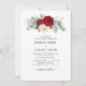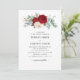 Vackra vattenfärgade blommigtar bouquet i rik och vita, innehåller vackra ponnyer och liljor, liksom lush grey och baby utandning. Blommigten arrangemang ställs in över en vit bakgrund och har en röd vattenfärgsduk på baksidan med fler blommigtar och bruden och rummets monogram. Dina uppgifter om bröllop är klara med svartfärgade calligraphy-skript med enkel elegant.