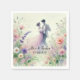 Verträumtes Aquarell-Hochzeitsbild in zarten Pastelltönen. Das Brautpaar steht inmitten eines blühenden Blumenmeers und einer malerischen Landschaft. Ein Symbol für ewige Liebe