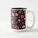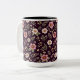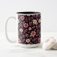 En charmerande mugg med mjuka vilda blommor i vintage ro och burgundi på djup plommonbakgrund. En romantisk boho-pekare för morgonkaffet eller kvällsteet.