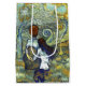 En konstdesign av en flicka och pojke som håller händer och går i skogen.