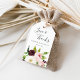 Lägg dessa märkre om blommigt i eleganten på dina bröllopsfavoriter för att tacka gästerna i chic stil. Vita märkre har ett kluster av vattenfärgblommor i burgundi marsala, rosa och elfenben, med lush grönt botaniskt bladverk. "Kärlek och tack" visas i handskrivet skript med texten namn och bröllop under. All text är redigerbar för den slutliga anpassningen. Designad för att matcha vår samling Romantik bröllop.