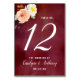 Den här samlingen har en moody marsala-röd bakgrund med trendigets typografi och blommigtens accenter. Anpassa designen med din ordalydelse så att de här bordsnumren blir helt unika för din speciella dag. *** HUR DU ORDER *** Anpassa och lägg till varje bordsnummer-kort i din kundvagn, en efter en, eftersom Zazzle för närvarande inte har något system för att tillåta anpassningar av produkterna när en beställning har gjorts.