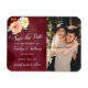 Den här samlingen har en moody marsala-röd bakgrund med trendigets typografi och blommigtens accenter. Anpassa enkelt designen med din ordalydelse så att dessa spara datum magneter blir helt unika för din speciella dag.