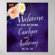 Den här samlingen har en moody midnattblå bakgrund med trendigets typografi och blommigtens accenter. Anpassa designen med din ordalydelse så att tecknet blir helt unikt för din speciella dag.