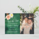Den här samlingen har en moody bakgrundsbild för grönten emerald med trendigets typografi och blommigtens accenter. Anpassa designen med din ordalydelse så att datumkorten blir helt unika för din speciella dag.